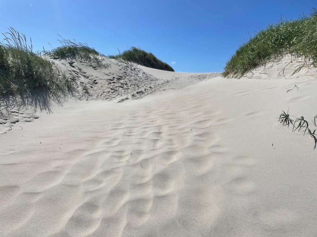 Using the incredibly charming bed and breakfast Pension Lærkelill (I cannot recommend this place enough) as our base, from which the western coast of Jutland is a short and scenic drive, we made our way to the beach in Bjerregård. Around seventeen degrees Celsius, it was a very windy day that had started out very overcast. But at around three o’clock, just as we approached the southernmost edge of Ringkøbing fjord and started up the narrow strip of land that separates the fjord from the sea, the sun broke through the clouds, revealing a blue sky.