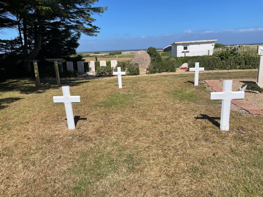 It was, then, the Danes who gave Blyth and the two other allied airmen who had washed up on the shore—Sgt. F. W. Webster of RAF 138 Squadron and Sgt. Arthur Robson of RAF 582 Squadron—a proper resting place on 1 July 1945 in a small churchyard just a few kilometres further up the coast in Haurvig.